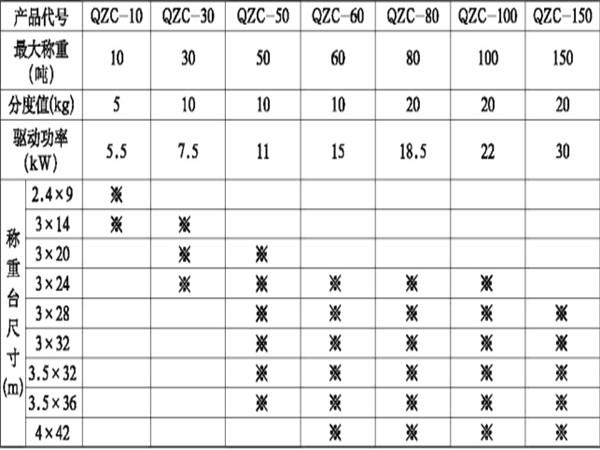 QZC系列稱板移動(dòng)精準(zhǔn)快速裝汽車(chē)系統(tǒng)技術(shù)參數(shù)表: