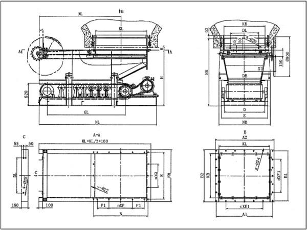 防砸閥門帶式(甲帶)給料機(jī)的閘門下增加了防砸閘門,當(dāng)料倉中的大塊物料落下通過給料機(jī)時(shí),首先了落在防砸閘門上,防砸閘門在物料的重力作用下打開,使物料經(jīng)緩沖后落到甲帶上,甲帶對(duì)物料起再一次的緩沖作用。因此,防砸閥門帶式(甲帶)給料機(jī)有效防止了大塊物料砸傷甲帶、皮帶、托輥。
